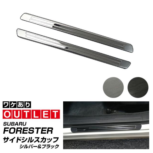 【アウトレット品】フォレスター SK系 サイドシル外側 スカッフプレート 2P 車体保護ゴム付き ブラックヘアライン