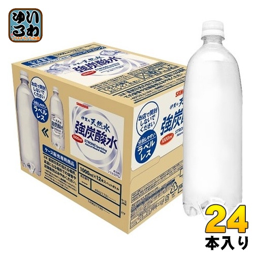 サンガリア 伊賀の天然水 強炭酸水 ラベルレス 1L ペットボトル 24本 (12本入×2 まとめ買い) 炭酸水 無糖炭酸 水