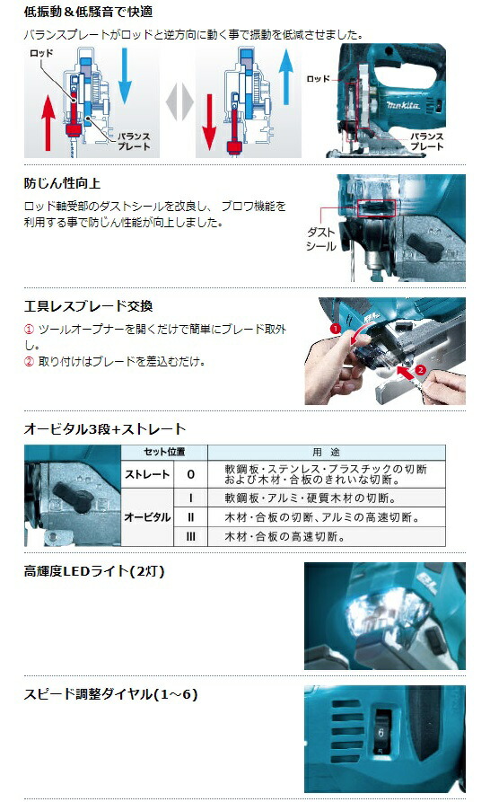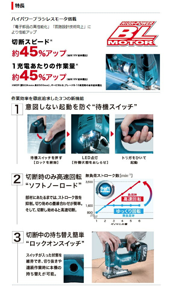 マキタ JV182DRG 充電式ジグソー バッテリBL1860B+充電器+ケース付 本機寸法266x77x208mm ブレード仕様 18V対応 makita 特