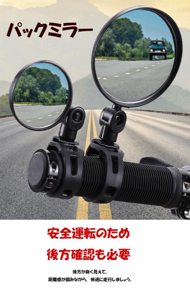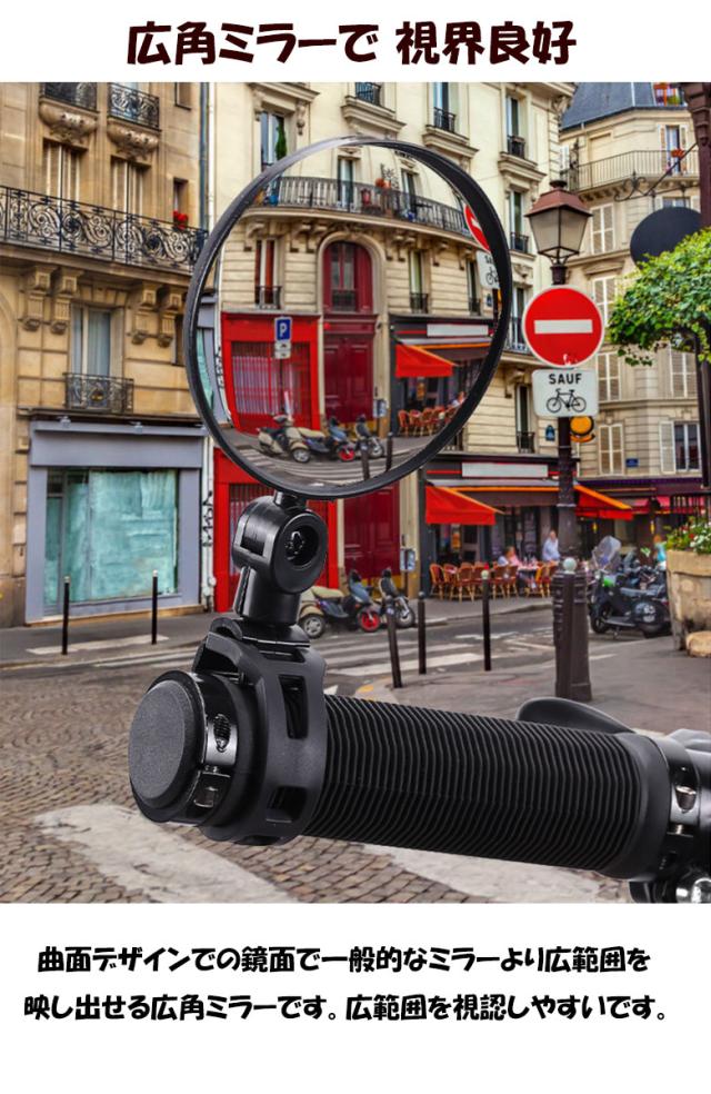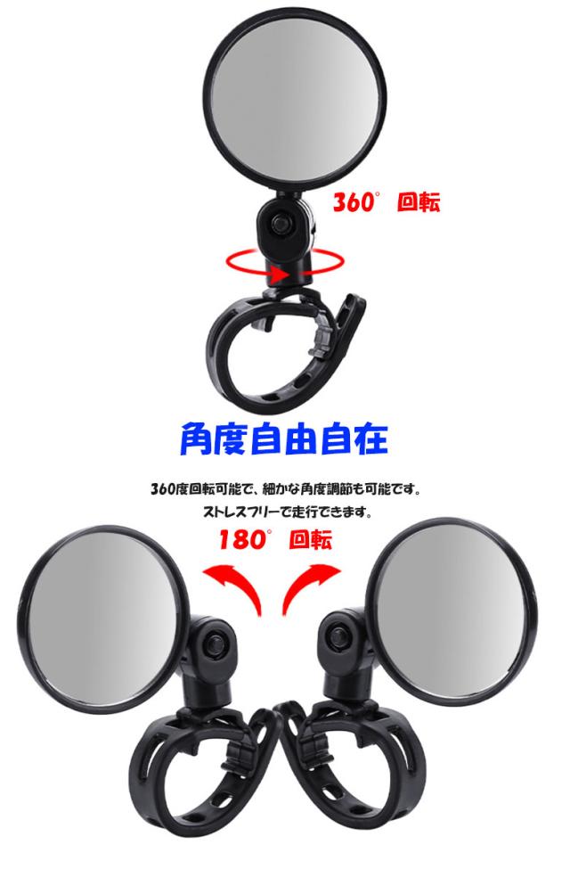 自転車用ミラー 視認性 取付簡単 バーエンドミラー バックミラー 360度回転 凸面鏡 2個セット 角度調節 広角ミラー 補助ミラー サポート ミニミラー 後方確認 自転車アクセサリー 超軽量 防水 左右兼用 ママチャリ ロードバイク 安全運転 ゴムバンド