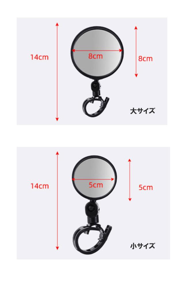 2サイズ 自転車用ミラー 視認性 バーエンドミラー バックミラー 360度回転 凸面鏡 2個セット 角度調節 広角ミラー 補助ミラー サポート ミニミラー 自転車アクセサリー 左右兼用 ママチャリ ロードバイク ゴムバンド