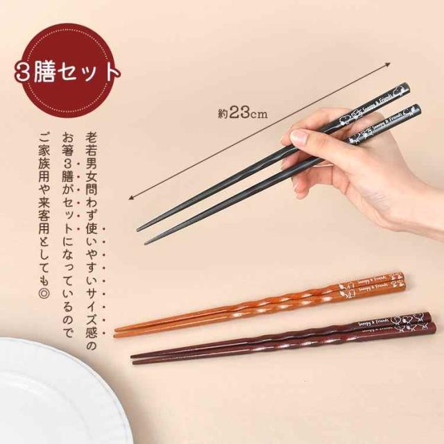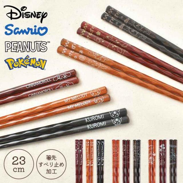 箸 3膳 セット スヌーピー サンリオ ポケモン ディズニー 持ちやすい すべらない お箸 はし 23cm 大人 子供 天然木 漆器 お箸 おしゃれ かわいい 女性 男性 ミッキー ミニー プーさん ドナルド ピカチュウ シナモン マイメロ クロミ キャラクター グッズ 四角 木製 シンプル