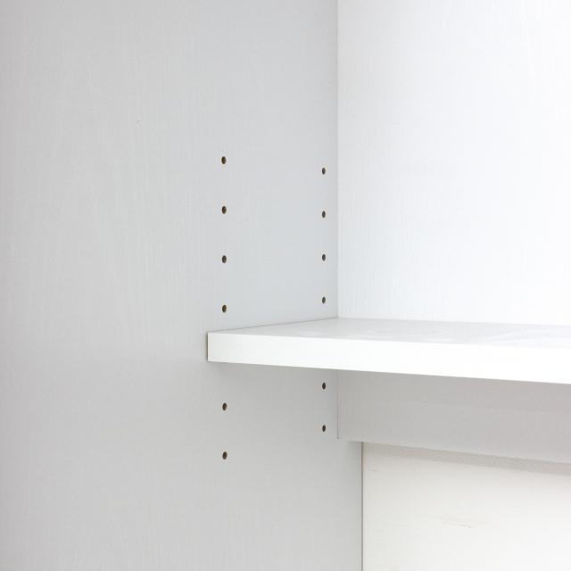 扉内には収納物に合わせて高さ調整できる可動棚が付いているので、空間を無駄にすることなく収納できます。