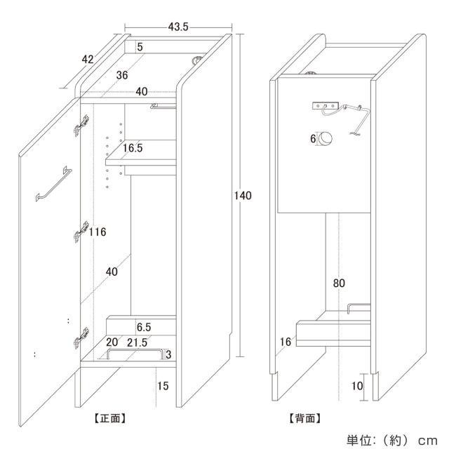| サイズ | 約 幅43.5×奥行42×高さ140(cm) |