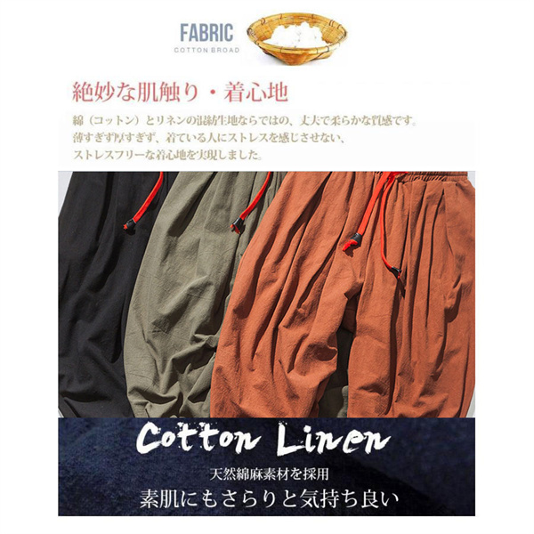 爆売中 サルエルパンツ 麻 メンズ 40代 ワイドパンツ パンツ ジョガーパンツ 無地 ボトムス サルエル ハイウエスト 春夏 カジュアル ゆったり