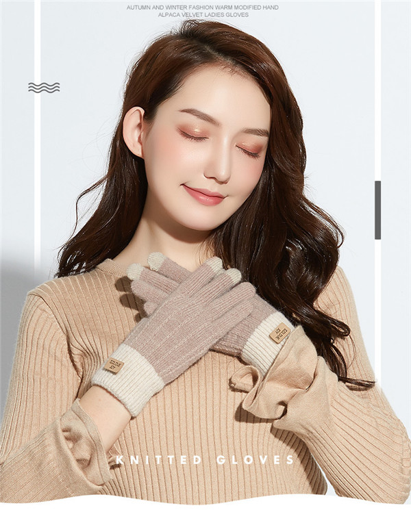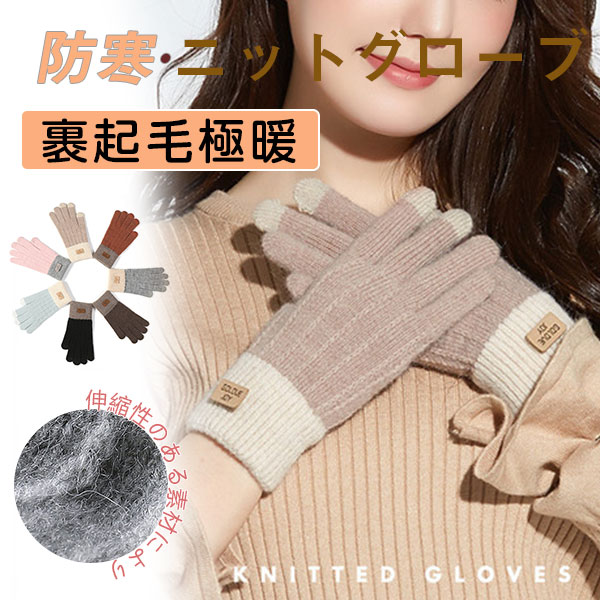 セール中 手袋 てぶくろ グローブ レディース スマホタッチ対応 防寒 暖かい 配色 秋冬 ふわふわ ニット かわいい おしゃれ 通学 手袋 滑り止め付き