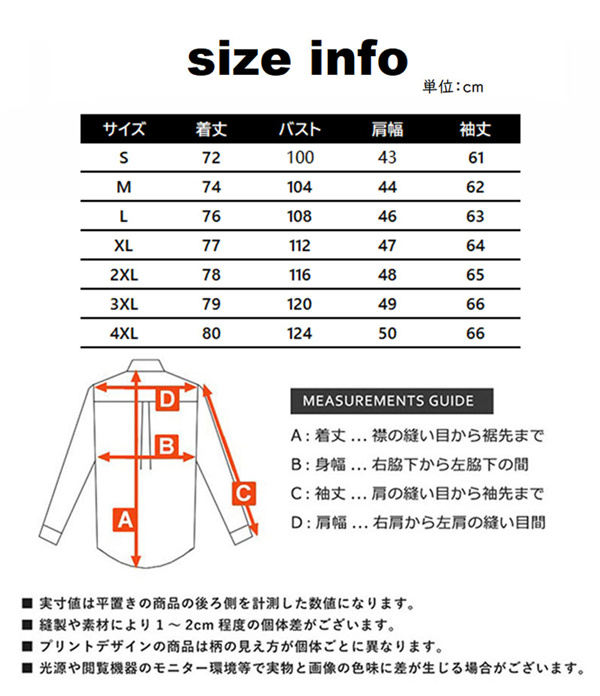 サイズ:/S/M/L/XL/2XL/3XL/4XL