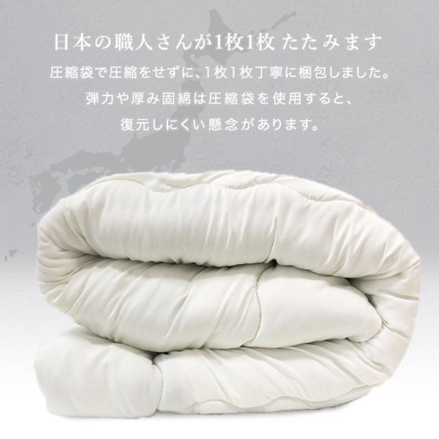 日本製の布団は圧縮袋で圧縮をせずに、職人さんが1枚1枚たたみました。