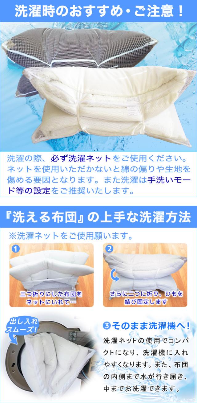 ★お洗濯の際には『洗濯ネット』お入れ頂き『手洗いモード・弱水流』にてお洗い頂き、『全自動コースでなく』→『脱水は水切り程度』『綿の偏りを均一化させて』『天日干し』を推奨させて頂いております。
