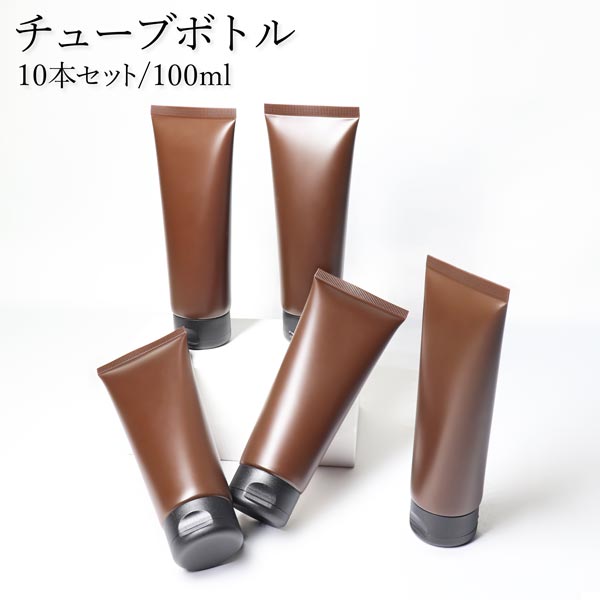 送料無料 100ml 10本セット チューブボトル 詰め替え 小分け ボトル コスメ クリーム 洗顔 化粧 出張 旅行 外出 ブラウン ブラック 携帯便利 収納 エコ