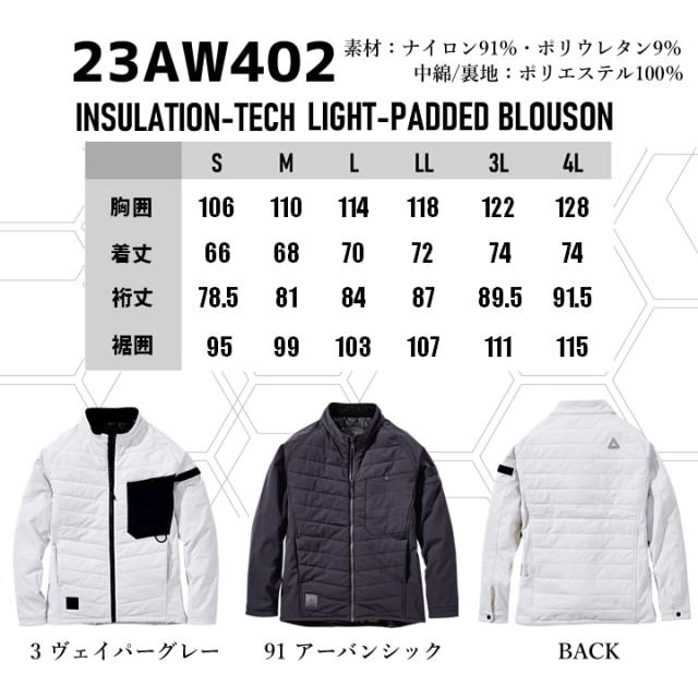 【即日発送】防寒ブルゾン 中綿 23AW402 アルファフォース ライトパテッドブルゾン アウター ジャケット ナイロン ストレッチ 保温 軽量 耐久性 反射プリント 軽防寒 秋冬 メンズ レディース 作業服 作業着 アルトコーポレーション