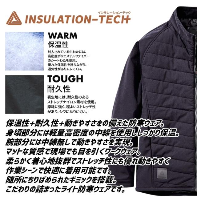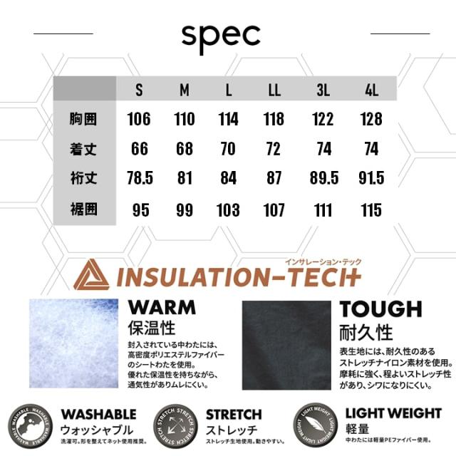 | 説明 特徴 | シンプルながらもデザイン性に優れ機能性も搭載したアルファフォースの防寒ウェア。 軽量+ストレッチで動きやすくマット調カラーでシックな雰囲気の防寒ウェア。 中綿に高密度ポリエステルファイバーのシート綿を使用。 軽量で保温性に優れ寒い季節でも快適に着用可能。 身頃部分には保温の中綿・腕部分はナイロンストレッチ素材で暖かく動きやすい仕様。 表地は耐久性のあるナイロンストレッチ素材で摩耗に強くストレッチがありシワになりにくい。 ワークシーンはもちろん普段でも着用可能な防寒アイテムです。 【特徴】 ● 軽量PEファイバー中綿 ● 耐摩耗性 ● ストレッチ性 |
