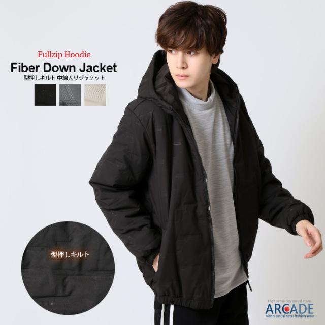 中綿ジャケット メンズ アウター 冬新作 型押しフーテッド 中綿入りジャケット 防寒 中綿ダウンジャケット