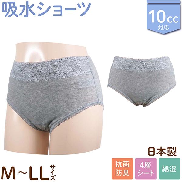 日本製 10cc 吸水ショーツ 婦人用 ウエストレース 女性用 【メール便送料無料】シニア 軽失禁 サニタリー 下着