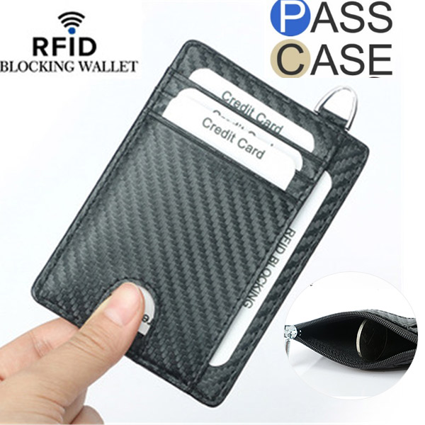 パスケース 定期入れ カード入れ メンズ カーボンレザー カードケース 小銭入れ スキミング防止 レディース ミニ財布 IDカード プレゼント ギフト