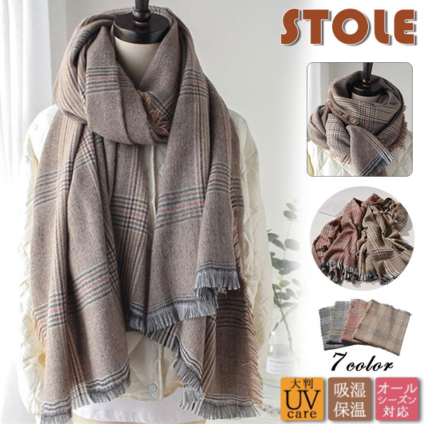 送料無料 ストール レディース チェック柄 秋冬 大判ストール ショール マフラー 羽織物 冷房対策 防寒 暖かい 母の日 おしゃれ 可愛い 柔らかい