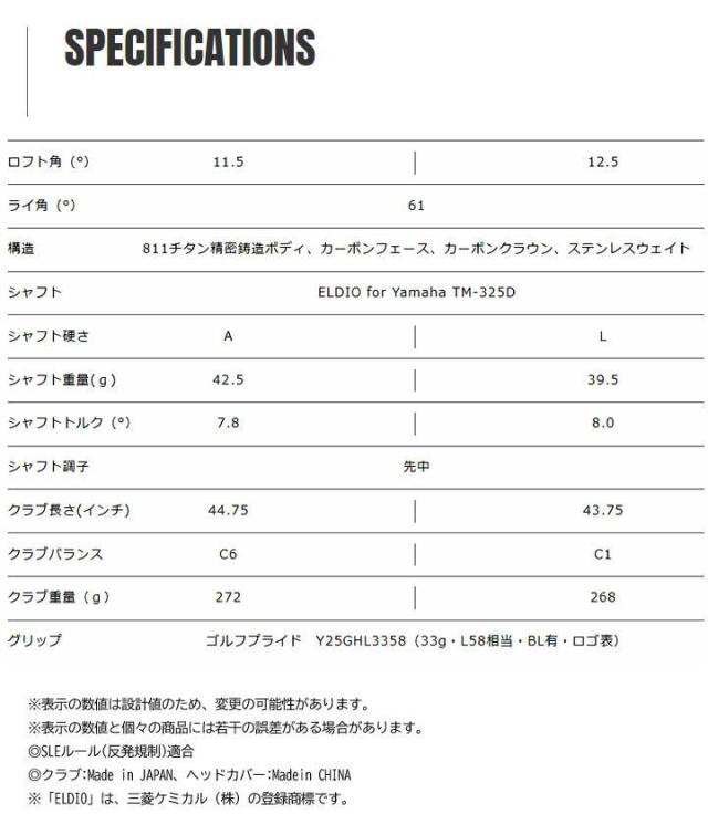 【特注スペック】【レディース】【2025モデル】ヤマハ インプレス ドライブスター ドライバー シャフト:ELDIO for Yamaha TM-325D カーボン INPRES DRIVESTAR For Ladies カスタム 受注生産 20p