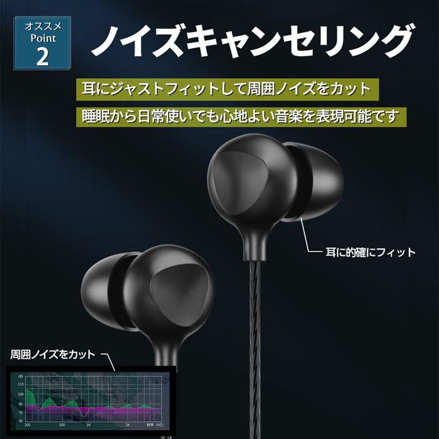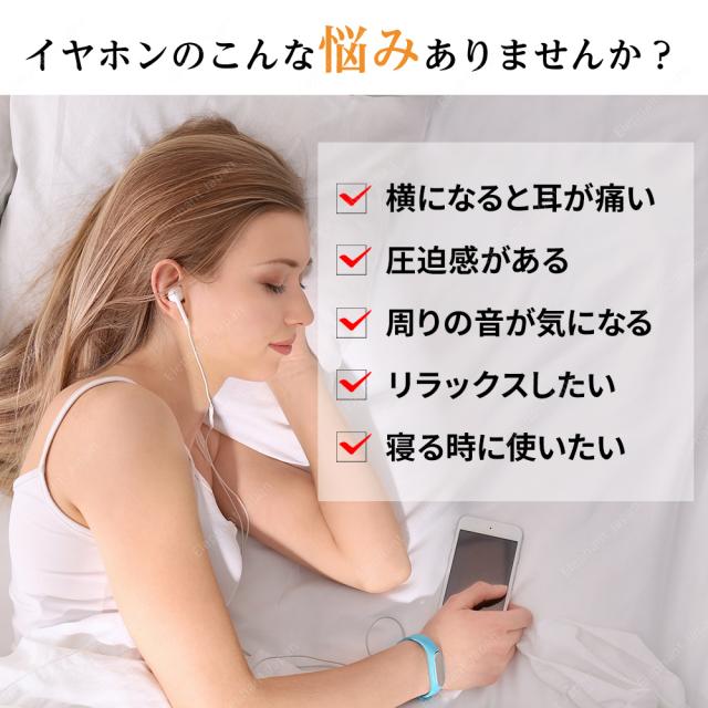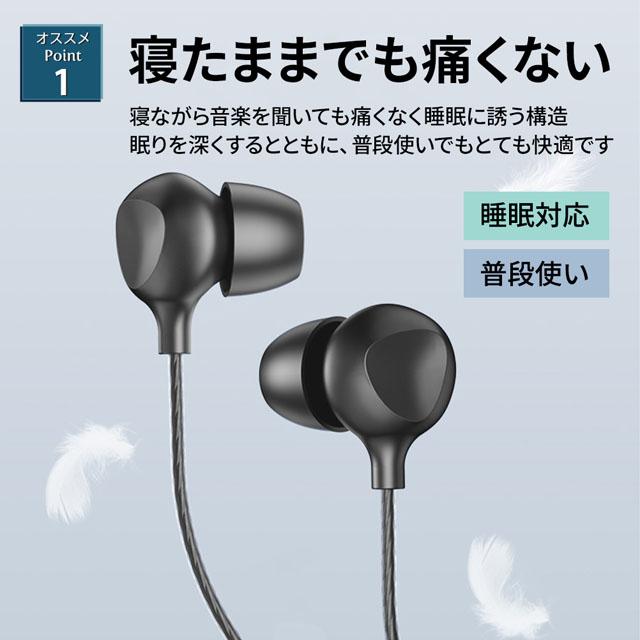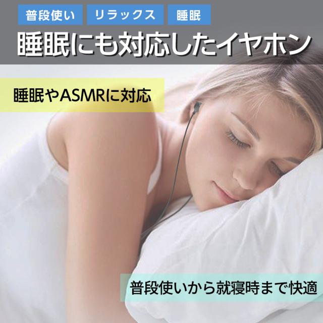 | 【横向きでも痛くなりにくい】 | 人体工学に基づいたセミインイヤー形状で、横になっても耳が痛くなりにくい設計。 就寝時のリラックス用やASMR視聴にも使いやすい睡眠対応イヤホンです。 |