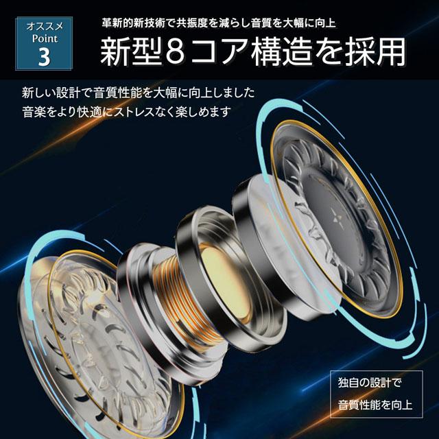| 【新型8コア構造ドライバー】 | 不要な振動を抑える内部構造を採用し、安定した音を実現。 細かな音のニュアンスもより自然に表現します。 |
