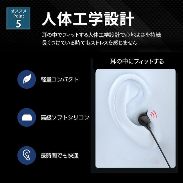 | 【快適なセミインイヤー構造】 | 耳にフィットしながら圧迫感を軽減するセミインイヤーデザイン。 長時間の装着でもストレスが少なく、睡眠時にも普段使いにも最適です。 |