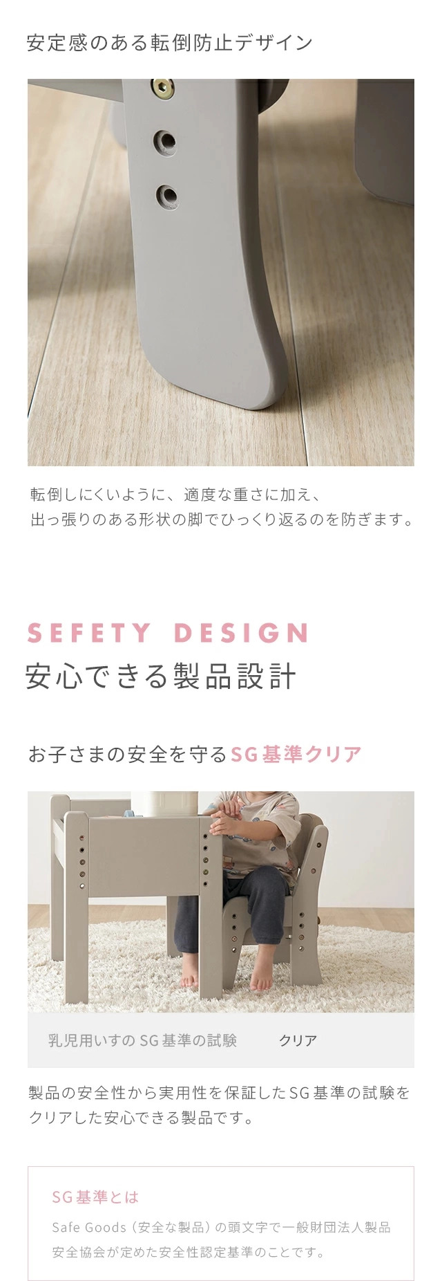 製品の安全性から実用性を保証したSG基準の試験をクリアした安心できる製品です。