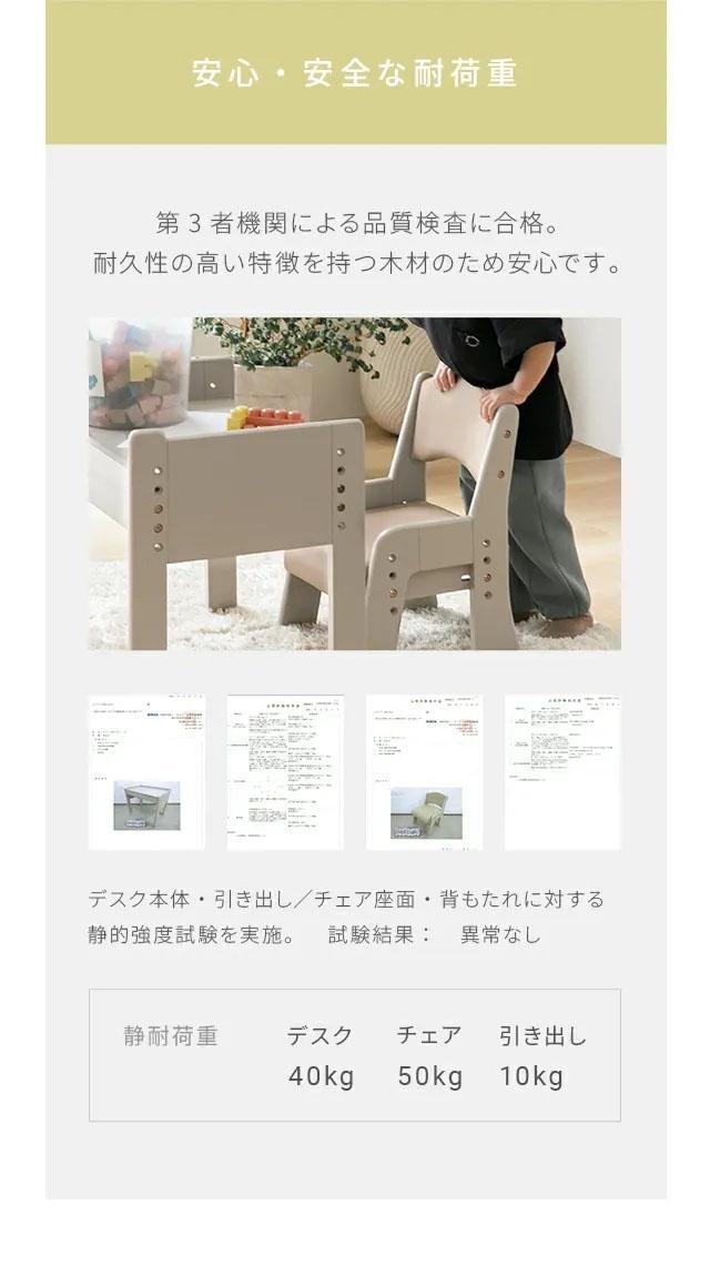 耐荷重:デスク40kg/チェア50kg/引き出し10kg