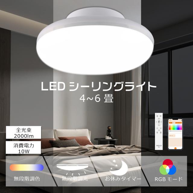 工事不要 LEDシーリングライト 4畳 6畳 調光調色 スマホ操作 10W 2000LM 100W形相当 シーリングライト リモコン付き PSE認証 スマートライト シーリングライト LED おしゃれ シーリングライト 調光 タイマー LED シーリングライト 洗面所 常夜灯 廊下 寝室 和室