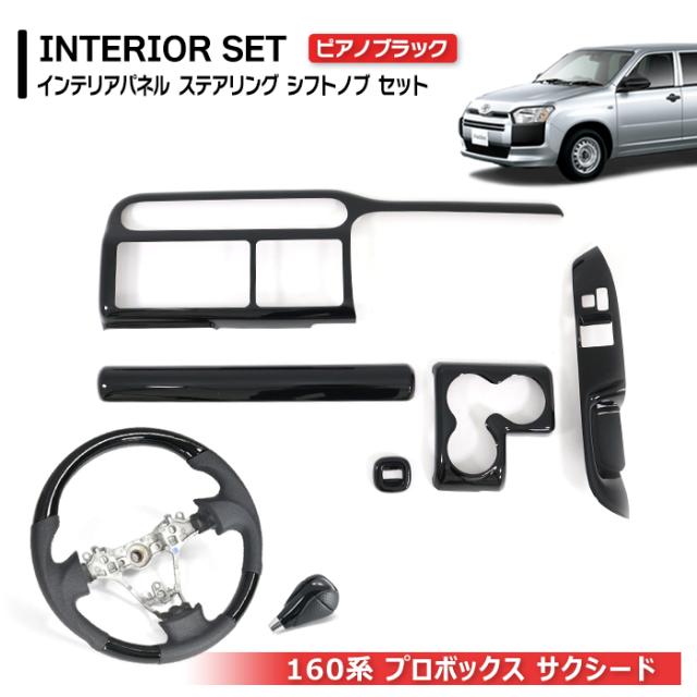 160系 プロボックス サクシード インテリア3点セット ピアノブラック 新品 インテリアパネル ガングリップ ステアリング シフトノブ 内装