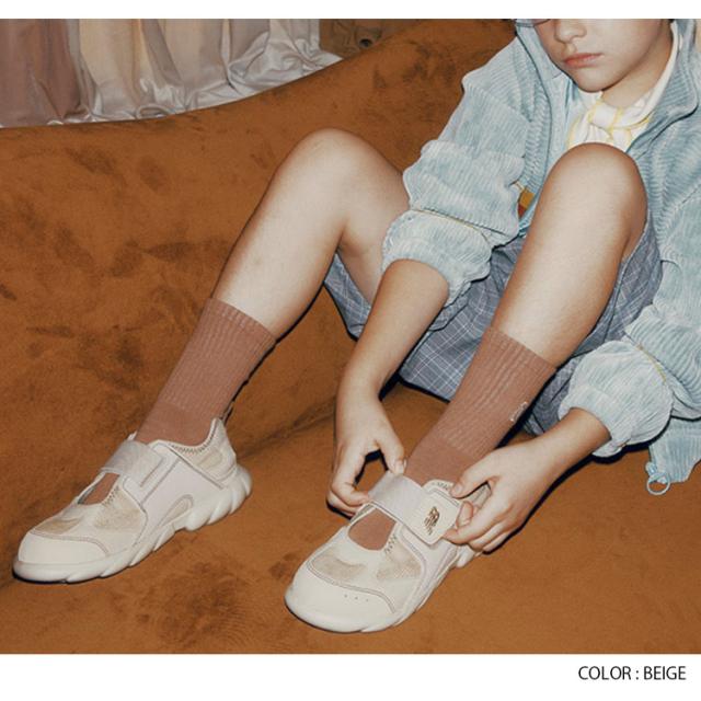 キッズシューズ NBキッズ ジュニアシューズ スニーカー コーデュロイ フリースインソール ベルクロ ベージュ クラシック