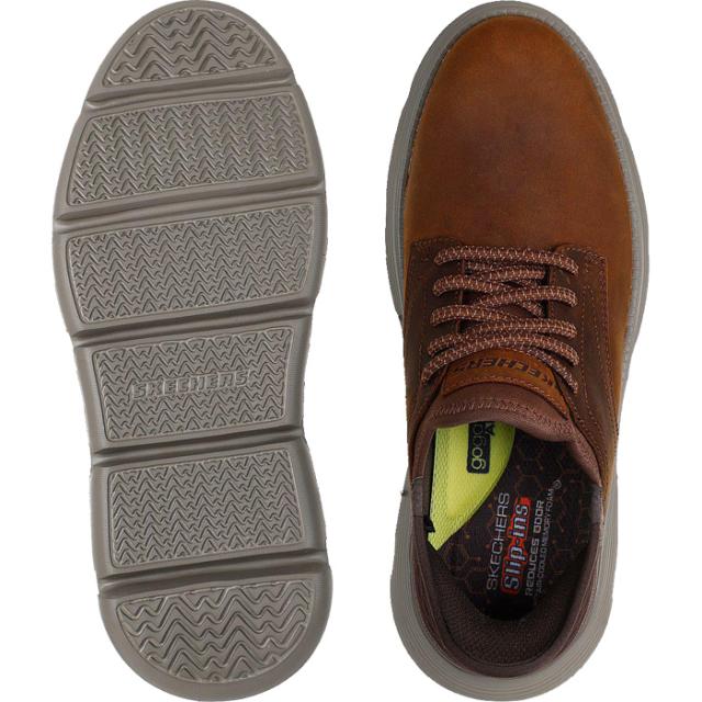 このTOUCHLESS FIT™ Oxfordスタイルは、ストレッチレースを配したなめらかなレザーのアッパー、Skechers Slip-ins™(スケッチャーズ スリップインズ)形状のヒールパネル、木炭を注入したSkechers Air-Cooled Memory Foam™(スケッチャーズ エアクールドメモリーフォーム)のインソール、サポート力を高めるSkechers Goga Mat Arch™(スケッチャーズ ゴガマットアーチ)が特長です。