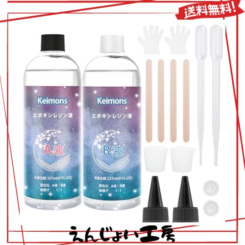 エポキシ樹脂 2液性レジン液 大容量 530g/16OZ/(エポキシ樹脂237mlと硬化剤237ml) ハードタイプ 混合比率1:1 エポキシレジン液 DIY 手芸
