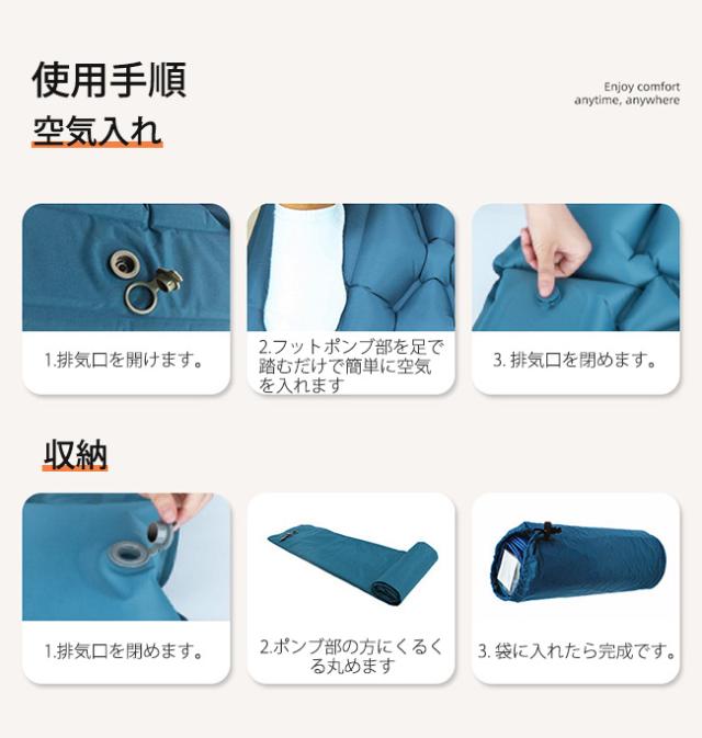 新作 エアマット アウトドアマット 足踏み式 幅広厚手 アウトド 折畳み 極厚 エアーベッド キャンプマット