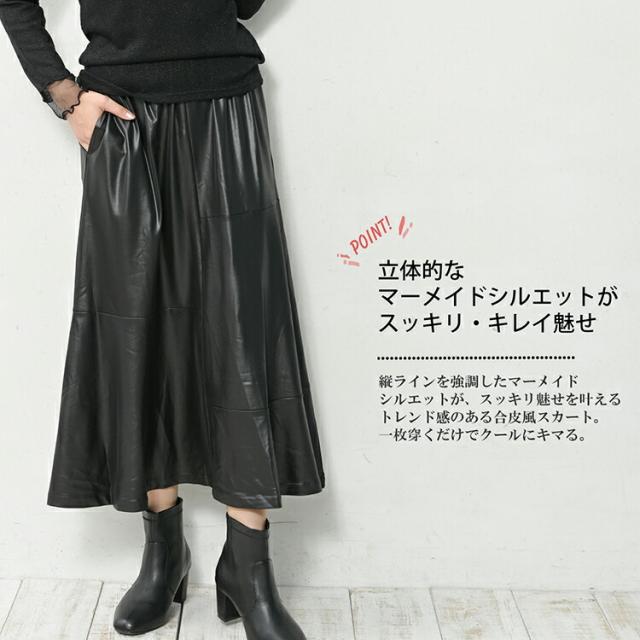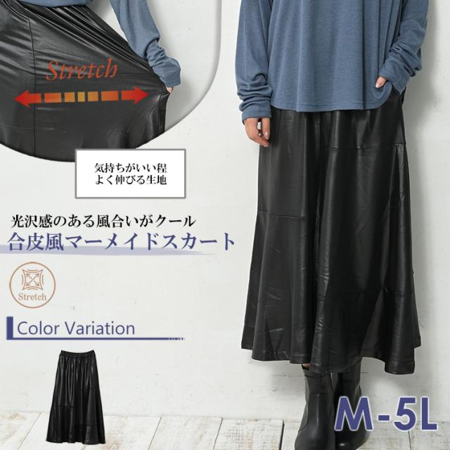 送料無料※沖縄/北海道対象外 大きいサイズ レディース 合皮風マーメイドスカート ロング丈 ウエストゴム 切り替え ボトムス M/LL/3L/4L/5L ゆったりサイズ ぽっちゃり女子 プラスサイズ 秋新作