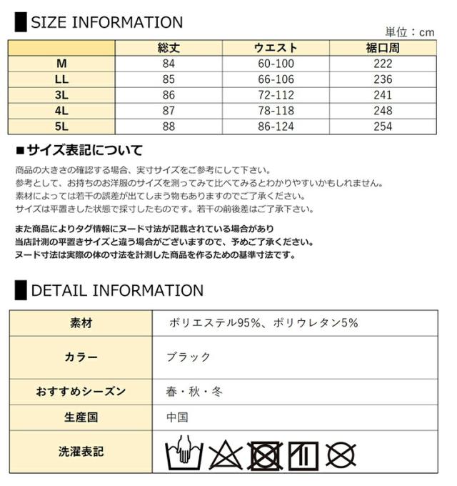5L:総丈88 ウエスト86-124 裾口周254