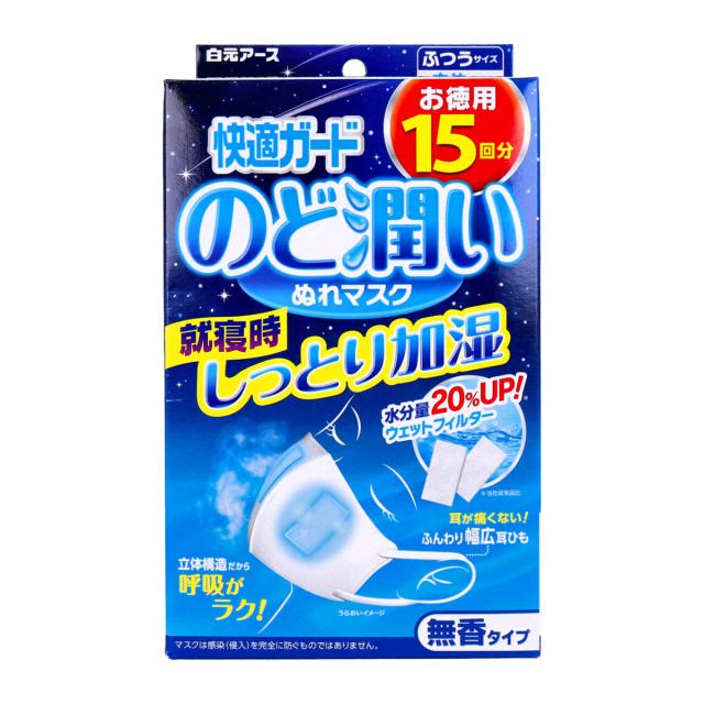 白元アース 快適ガード のど潤いぬれマスク ふつうサイズ 無香タイプ 15セット入り X3箱