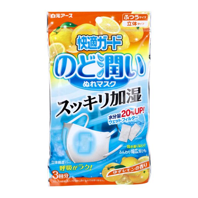 白元アース 快適ガード のど潤いぬれマスク ふつうサイズ ゆずレモンの香り 3セット入り X6パック