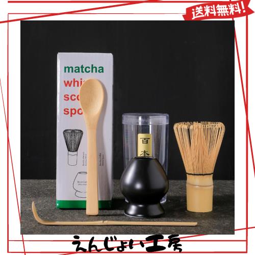 Yoseka 茶道具 茶筅 茶せん 100本立・くせ直し・茶杓・茶さじ お抹茶 4点セット 茶筌 茶筅セット 茶筅直し 茶しゃく 百本立(ブラック)