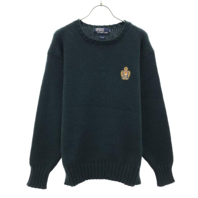 ポロラルフローレン 90s ウール オールド ロゴ刺繍 長袖 セーター L ダークグリーン POLO RALPH LAUREN ニット メンズ