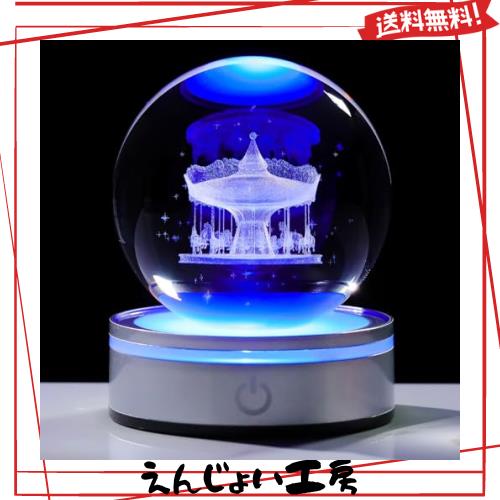 ?【3Dレーザー彫りで 水晶玉】?おしゃれな「3D メリーゴーランド 」 がグレードの3Dクリスタルに内蔵しています、レーザー彫刻技術を使用して、決して色あせない。LEDライトでクリスタルの中の3Dアートが輝き、幻想的な画像で心に癒しを与えてくれます。色は明るい暖かく、風合いは自然であり。ます女性への誕生日完全プレゼントにおすすめ!!!!