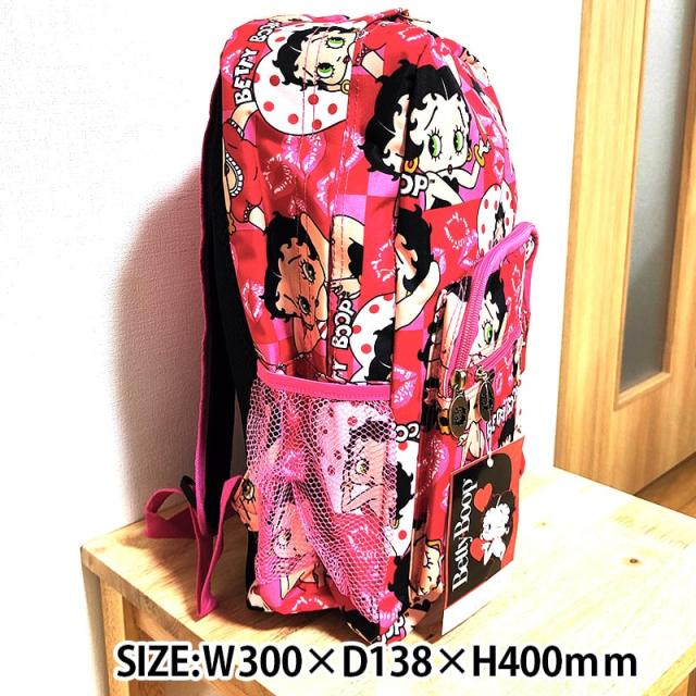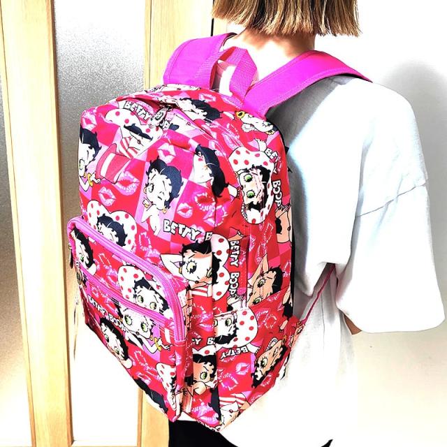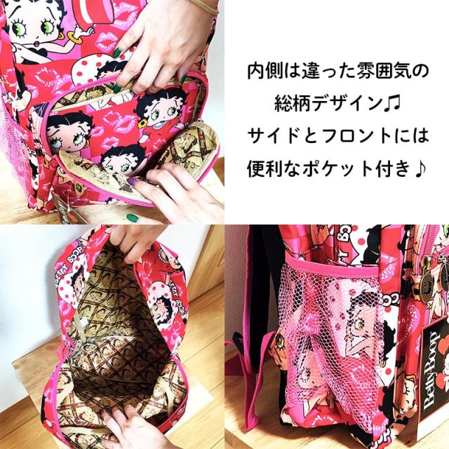 ベティちゃんが全体にデザインされたかわいい大容量リュックサックです。