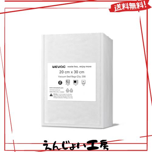Wevac 真空パック袋 20×30cm 200枚いり しんくうぱっく 真空袋 カット済み エンボス加工 脱気しやい 密閉性 野菜 お米 お魚 犬のフード