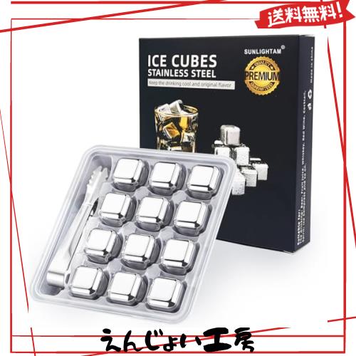 ドリンク用12個セット再利用可能ステンレス鋼製アイスキューブ、メタルウイスキーストーン、ウイスキー・ウォッカ・リキュール・ワイン・