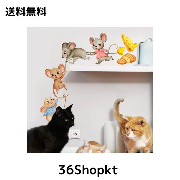 WOHAHA ネズミプリントウォールステッカー 餌を運ぶネズミ ウォールシール おしゃれ 子供 部屋 可愛い動物たち ウォールペーパー 台所 食