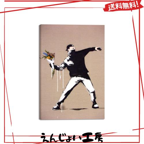 バンクシー ポスター 花を捨てる少年 絵画 アートパネル 壁掛け 絵 トイレ 絵 インテリア 飾り絵 玄関 絵 開運 木枠付きの完成品 (40x60c