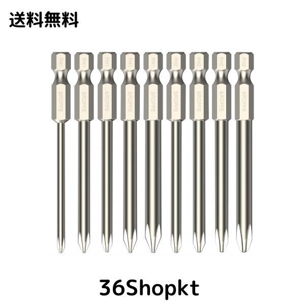 YMJOGGUE 9本 プラスドライバービット 75mm 十字軸 S2鋼 磁気クロスヘッドドライバービット 片頭ビット PH0 PH1 PH2電動ドライバービット