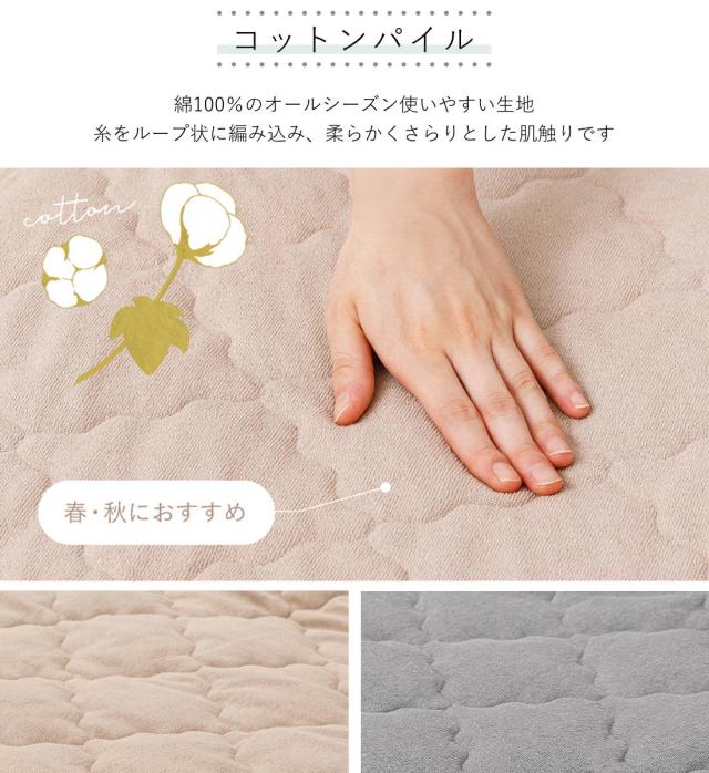 敷きパッド単品 セミダブル コットンパイル ズレない敷きパッド ピターら ( PITARA 敷きパッド 単品 ベッドパッド ズレない 密着 通年用 オールシーズン 寝具 ベージュ グレー 洗濯OK シンプル )