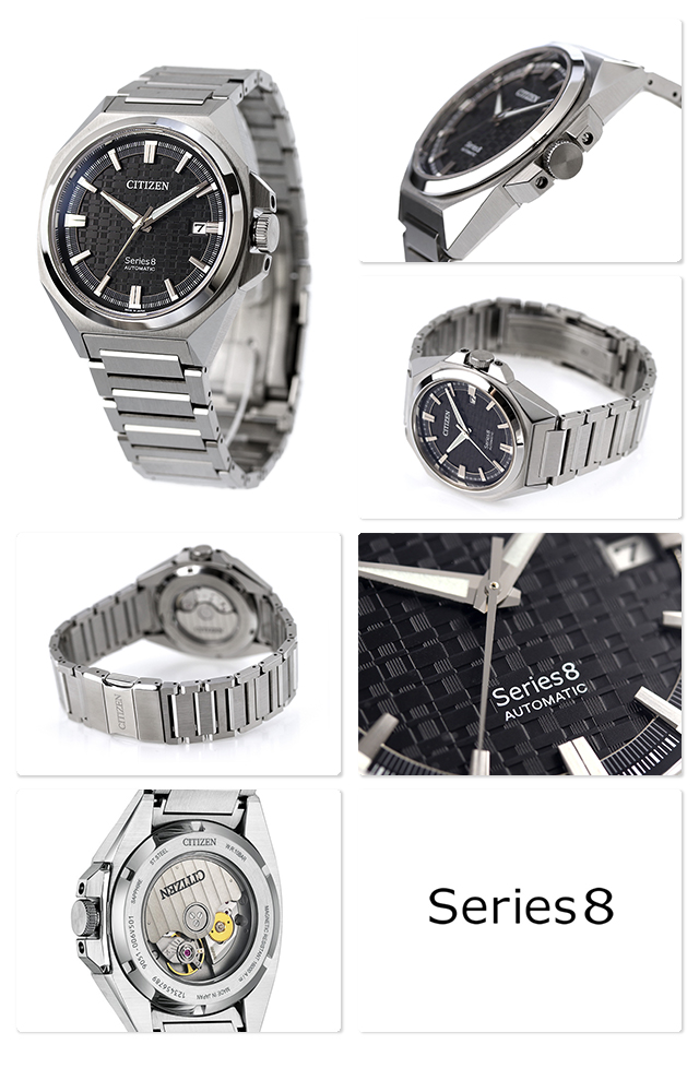 正規品 7年保証キャンペーン 送料無料 シチズン シリーズ8 メカニカル 831 日本製 メンズ 腕時計 NB6050-51E CITIZEN Series 8 831 Mechanical アナログ ブラック 黒 ◆機能と実用性を兼ね備えたモダンデザインの 機械式時計ブランド「Series 8(シリーズエイト)」。 シリーズエイトのエントリーモデル831 Mechanicalがリニューアルして登場。スポーティでスタイリッシュなデザインが特徴の831 Mechanicalが新仕様にリニューアルしました。文字板には、880 Mechanicalと同じオリジナルパターンを採用。上質な大人っぽさを感じさせる 仕上がりです。裏ぶたはムーブメントの動きを楽しめるシースルーバック仕様です。シンプルなデザインでシーン問わずお使いいただけ、プレゼントにもおすすめです。 発売日:2024年10月発売 機械式腕時計