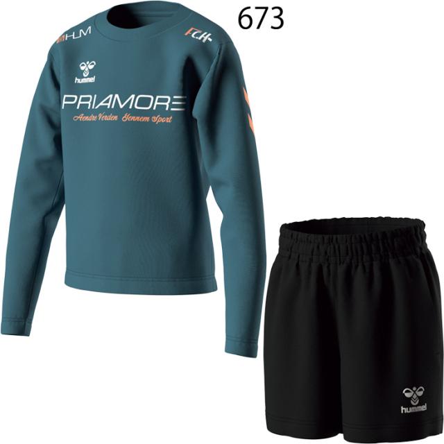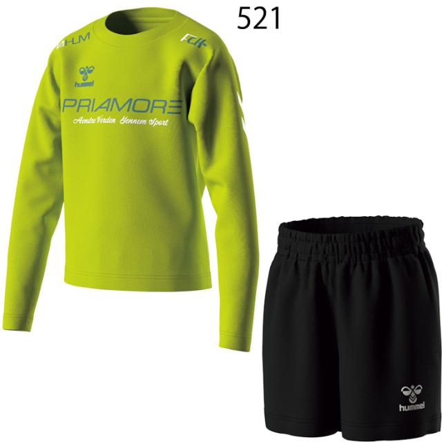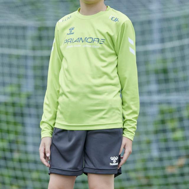 ヒュンメル キッズ 長袖シャツ ショートパンツ 上下 130-160cm hummel PRIAMORE ジュニア プラクティスセット 子ども用 サッカーウェア セットアップ 吸汗速乾 子供服 フットボール フットサル スポーツウエア 練習着 上下組 ブランド PRIAMORE アパレル/HJP7200SP
