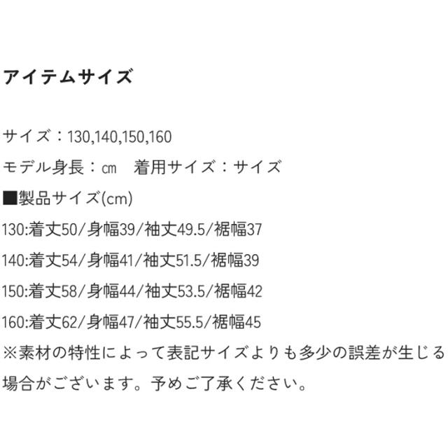 160サイズ:着丈62/身幅47/袖丈55.5/裾幅45