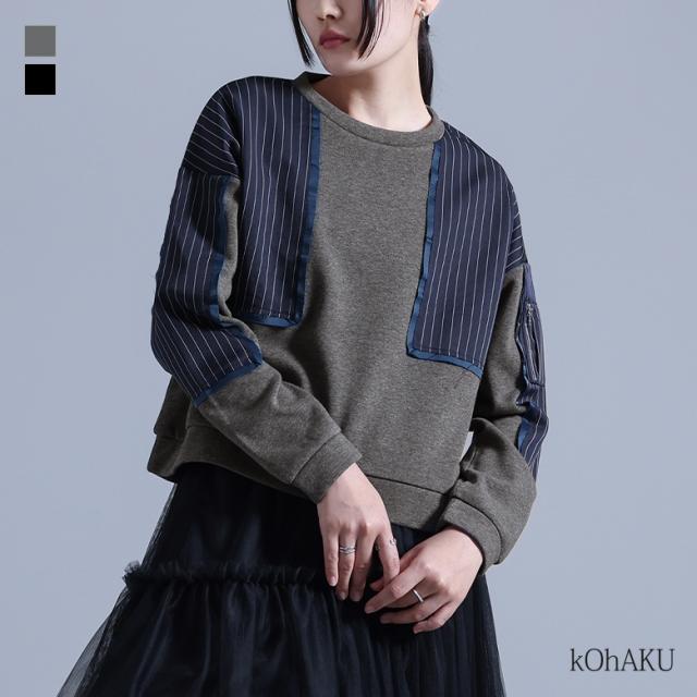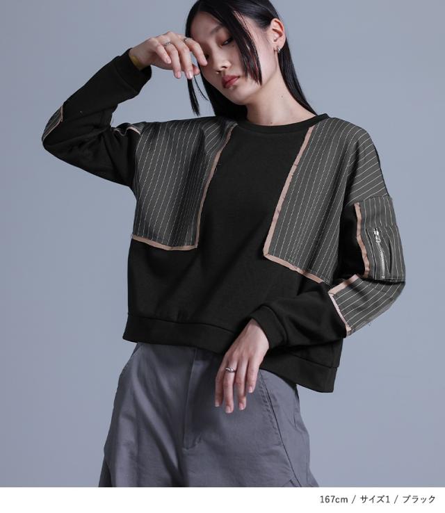 スウェット レディース トップス トレーナー プルオーバー クルーネック 長袖 異素材 裏シャギー ショート丈 あったか 【TP】 カットソー スエット デザイントップス 袖リブ リブ袖 ショート丈トップス ショート丈スウェット 切り替え ストライプ柄 サテン 配色 異素材MIX ドッキング ポケット おうちで洗える あたたかい あったかい もこもこ ふわふわ ふわもこ 秋 冬 秋冬 ハイデザイン モード キレカジ 上品 きれいめ ラフ かっこいい エフォートレス Sサイズ Mサイズ Lサイズ LLサイズ 3Lサイズ XLサイズ 10代 20代 30代 40代 50代 60代 低身長 高身長 女子会 通勤 通学 お買い物 お出掛け 旅行 リゾート レジャー 海 おしゃれ お洒落 トレンド 流行 デート 散歩 ショッピング kOhAKU コハク 大人女子 大人可愛い お洒落可愛い 大人カジュアル スタイリッシュ 洗練 エッジィ osharewalker オシャレウォーカー おしゃれうぉーかー グレー 灰色 杢チャコール ブラック 黒[ID]14tm0ij[kOhAKU裏シャギー異素材ドッキングスウェット]